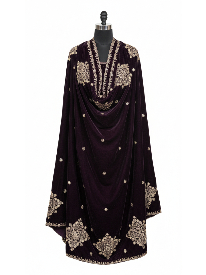 Make a statement with this stunning wine velvet kurta set, designed for moments that call for elegance and drama. The kurta is crafted from soft velvet that drapes beautifully and adds a rich, regal feel to the outfit.