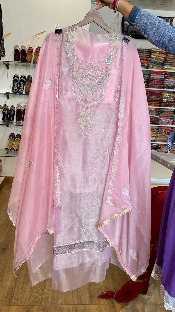 & Free ShippingStep into the spotlight with this sophisticated three-piece suit set. Designed with a focus on delicate textures and luxurious finishes, this outfit features a unique blend of shimmering tissue fabric and classic embroidery.