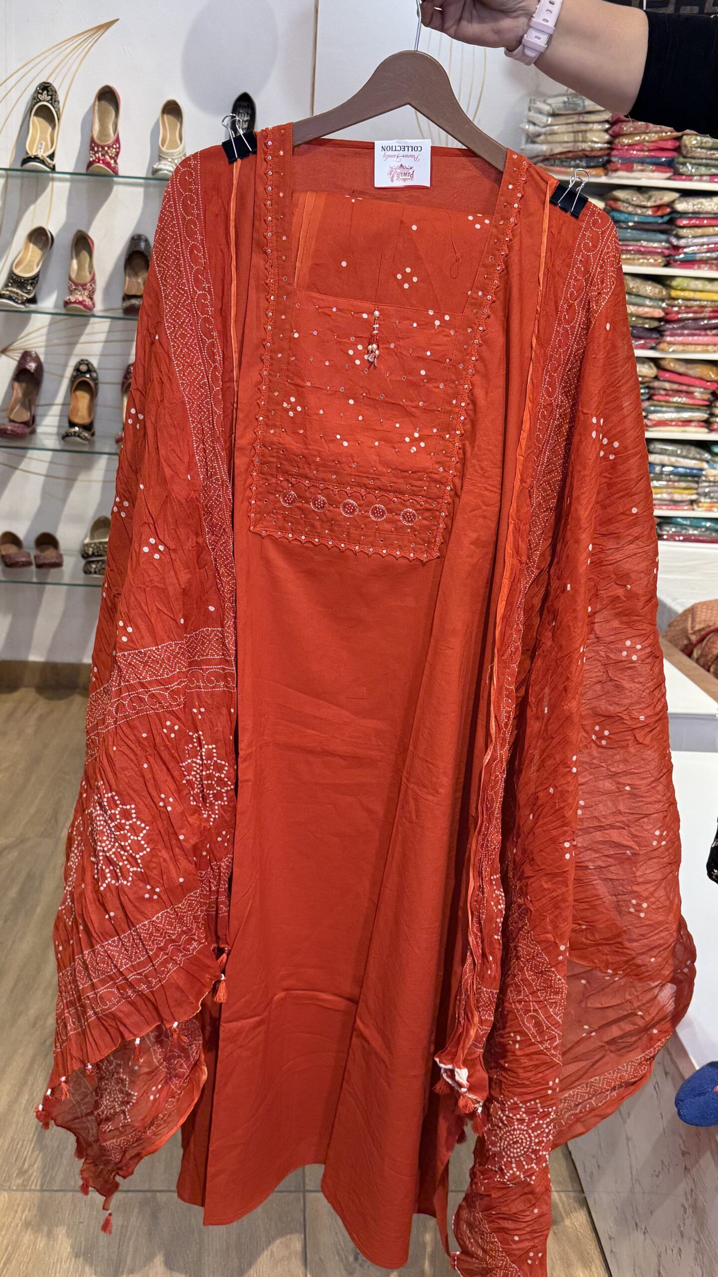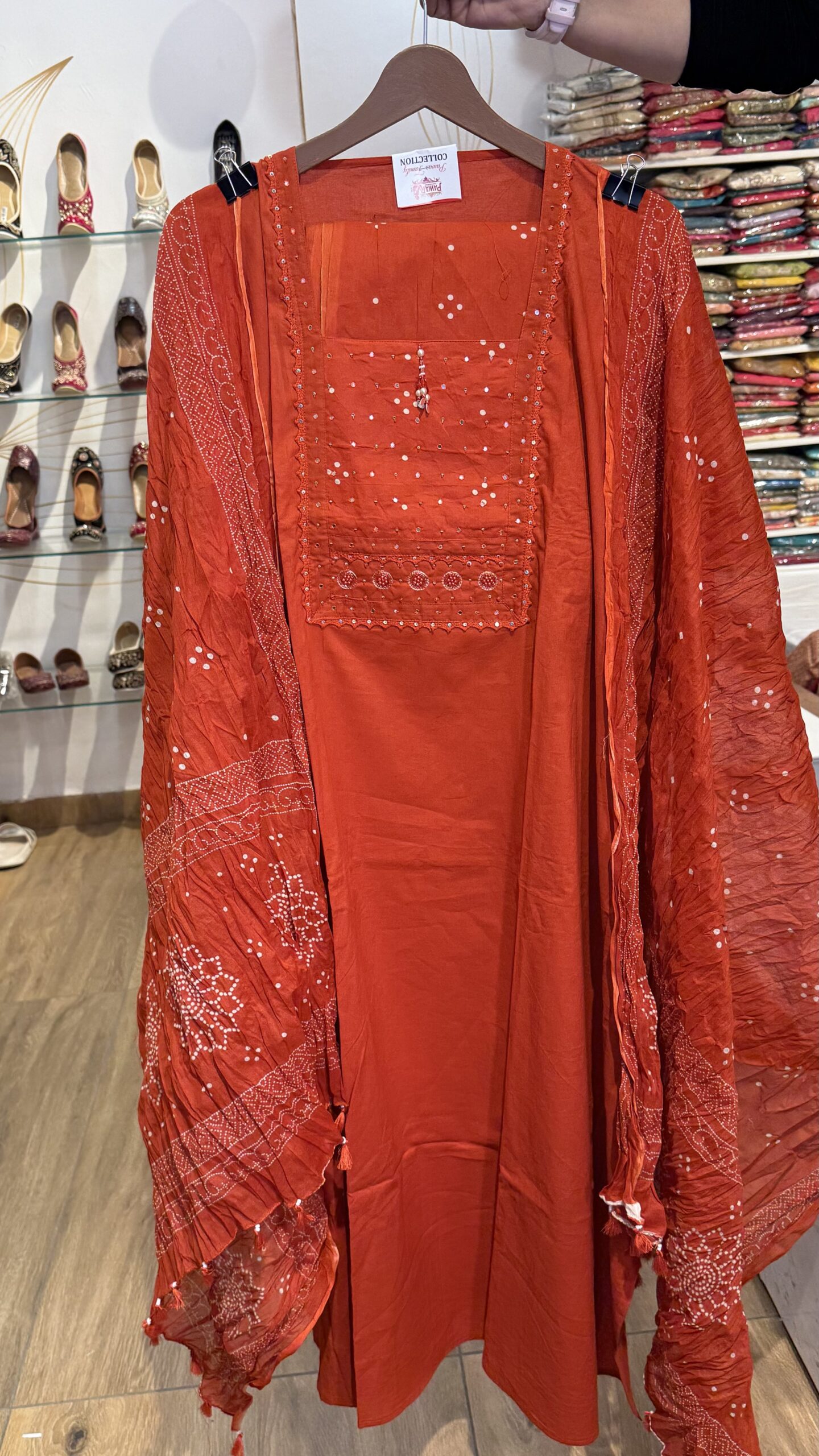 Celebrate heritage and style with our Burnt Orange Bandhani Suit Set. This ensemble is designed for the woman who appreciates the intricate beauty of traditional Indian textiles. The rich, warm tone is universally flattering and radiates festive energy.