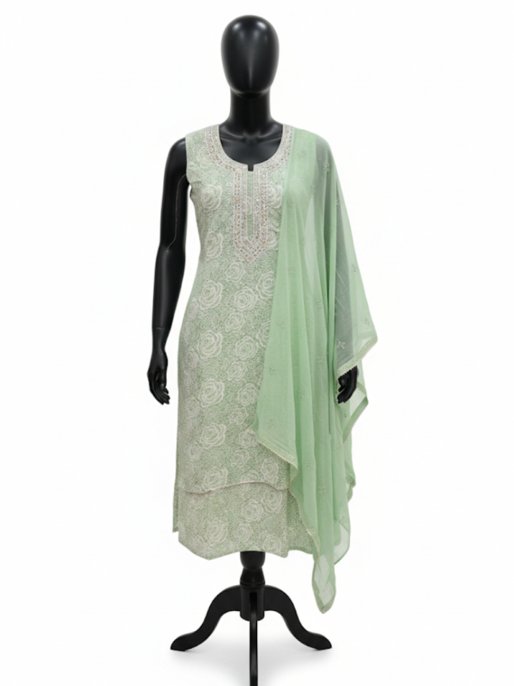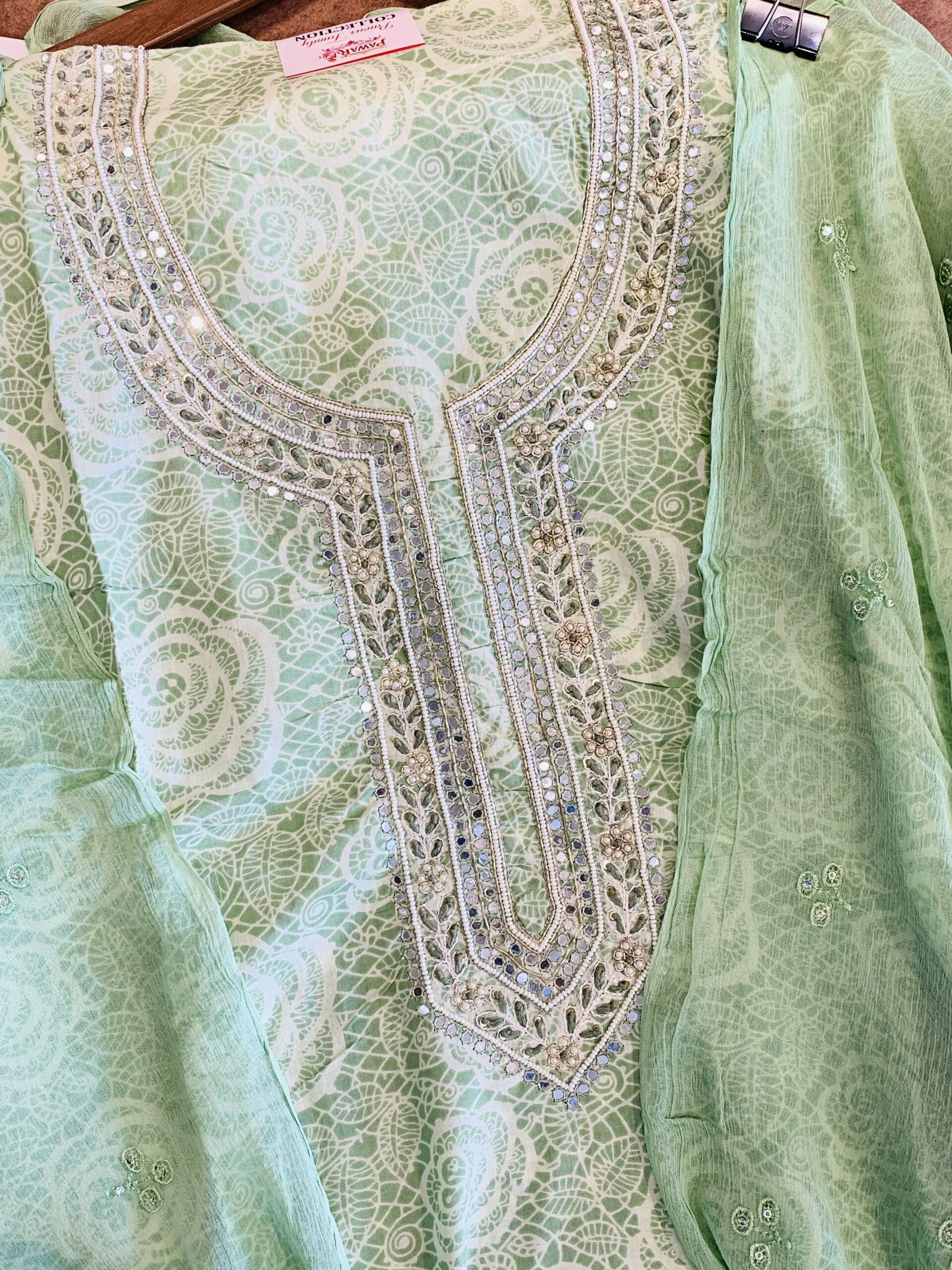 Indigo Sun: Premium Cotton Suit with Artisan Paisley Neckline