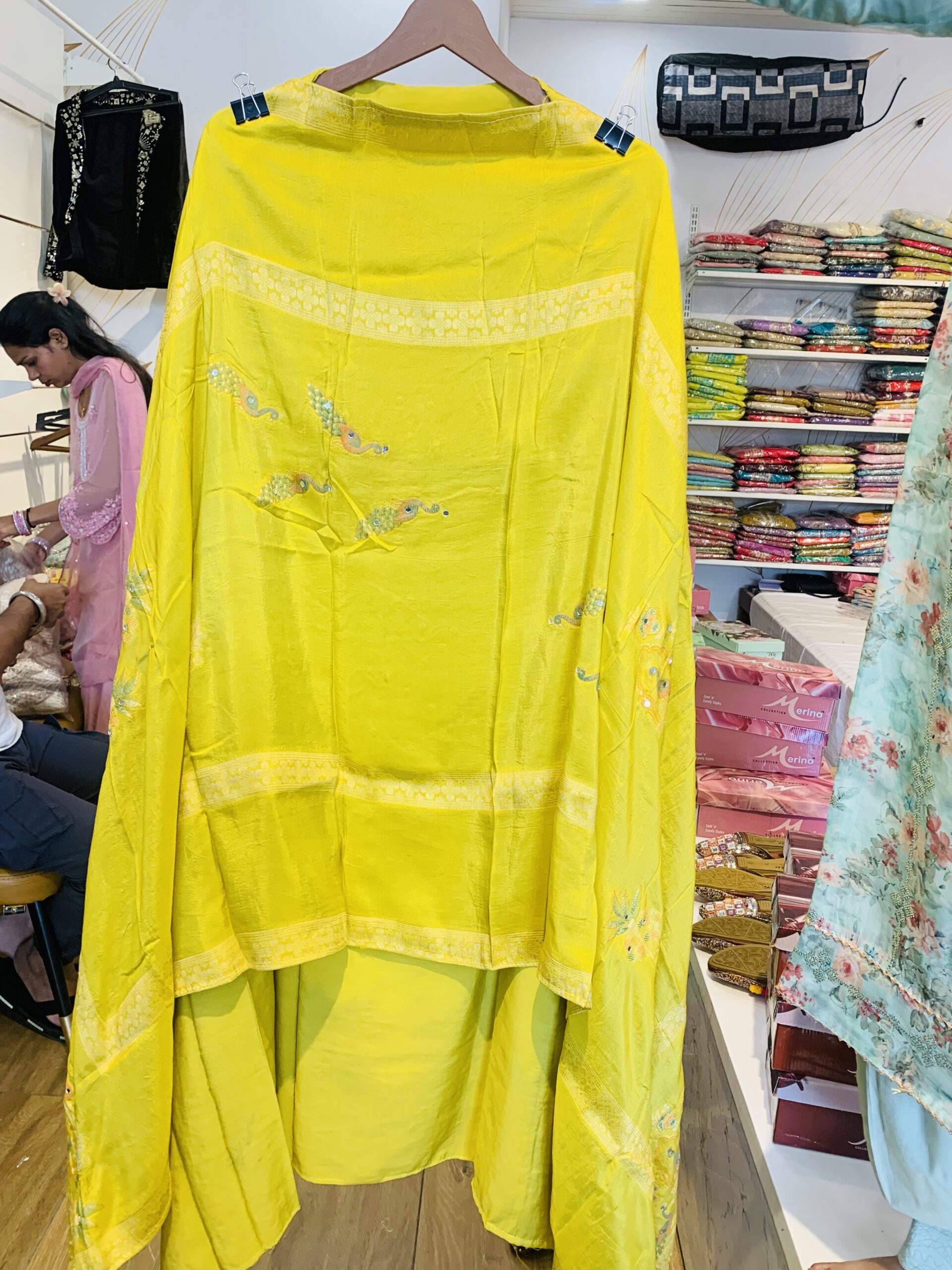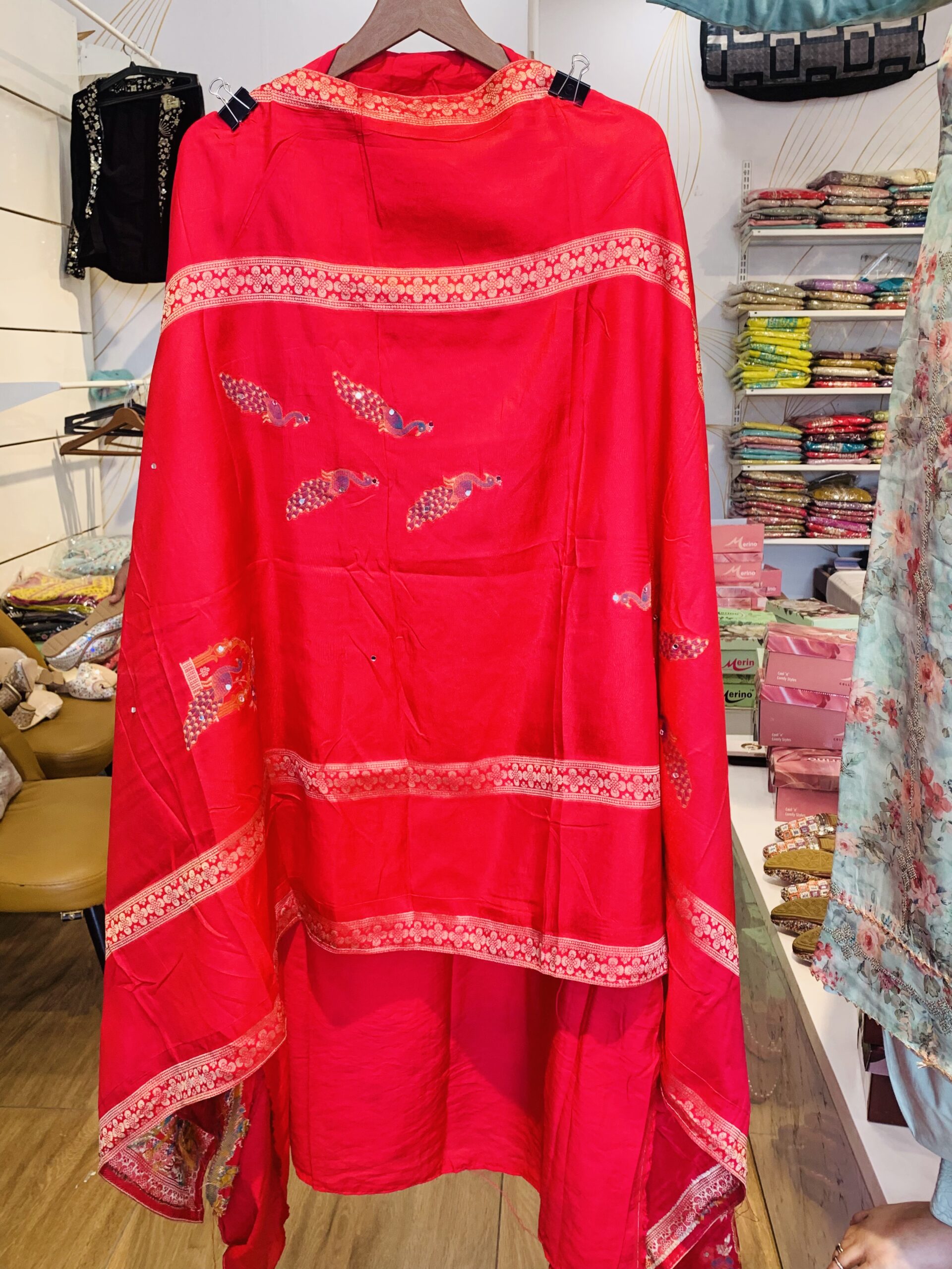 Dupatta: A matching Maslin dupatta with self-printing and a coordinated border that pulls the entire look together.
