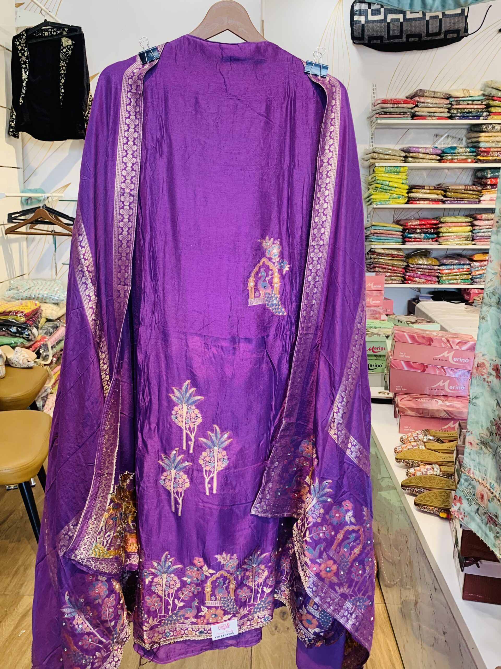 & Free ShippingDrape yourself in luxury with this Premium Muslin 3-Piece Suit Set. Featuring a deep royal purple hue, this ensemble combines the soft, breathable comfort of Muslin fabric with exquisite digital printing and delicate hand-embellishments. Whether it’s a festive gathering or a formal evening event, this outfit ensures you stand out with grace.