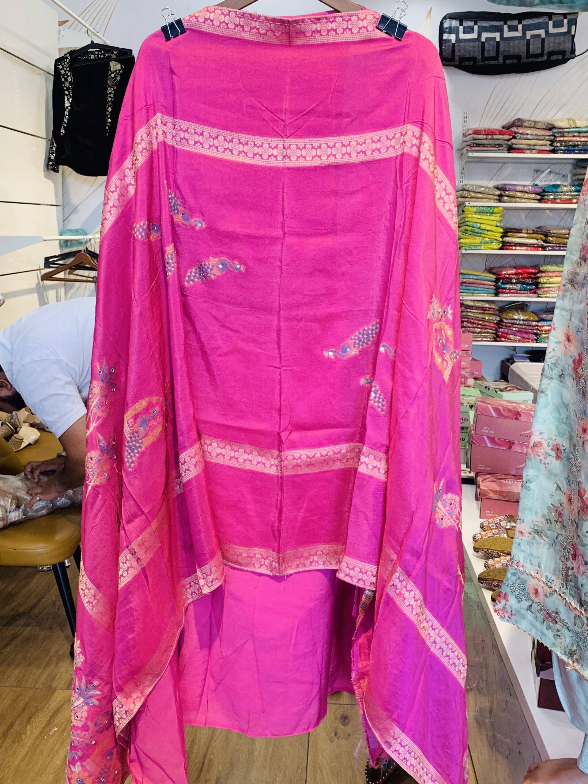Shirt (Kameez) Fabric: Pure Maslin silk-blend, known for its lightweight feel and subtle natural sheen.
