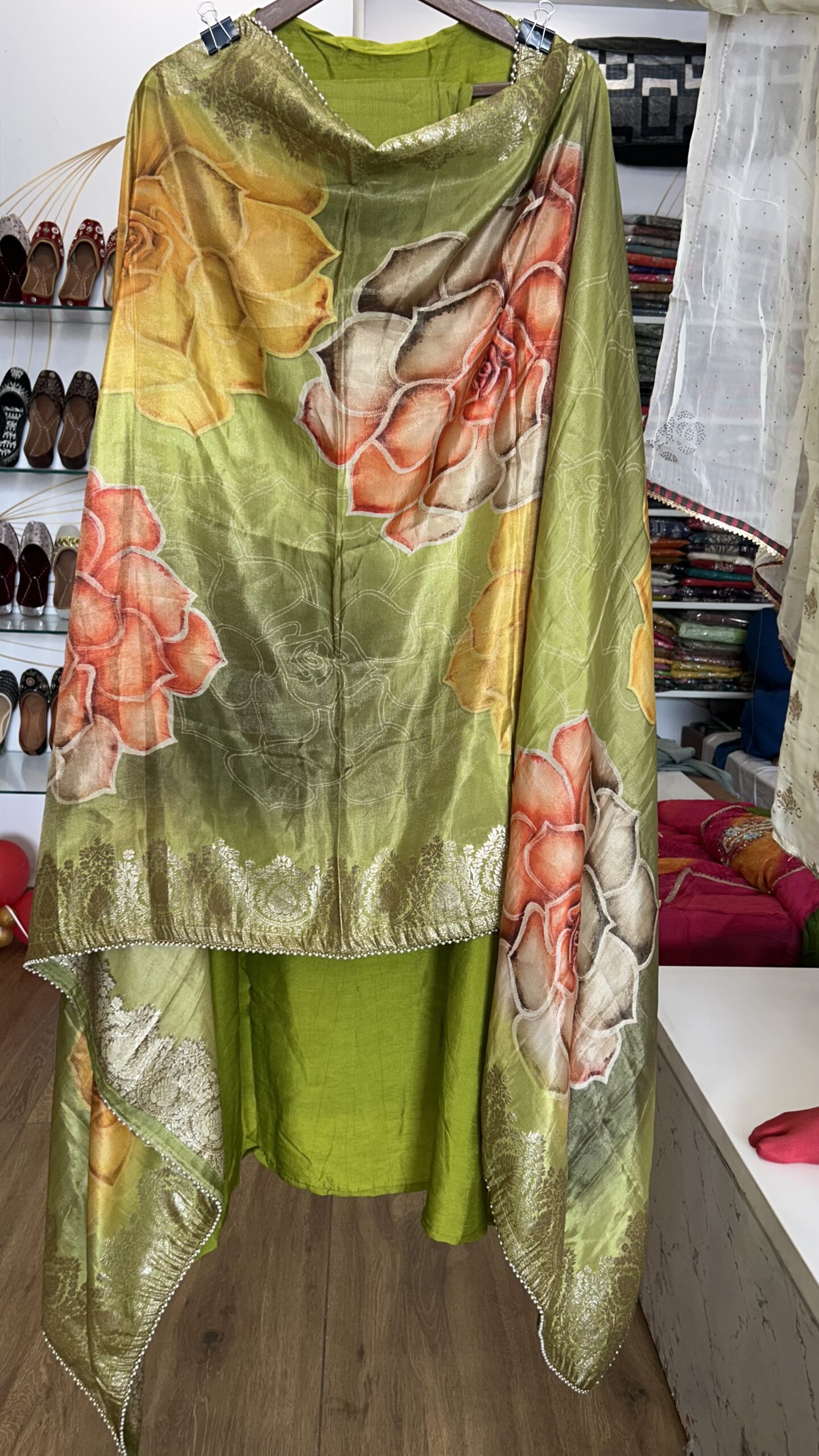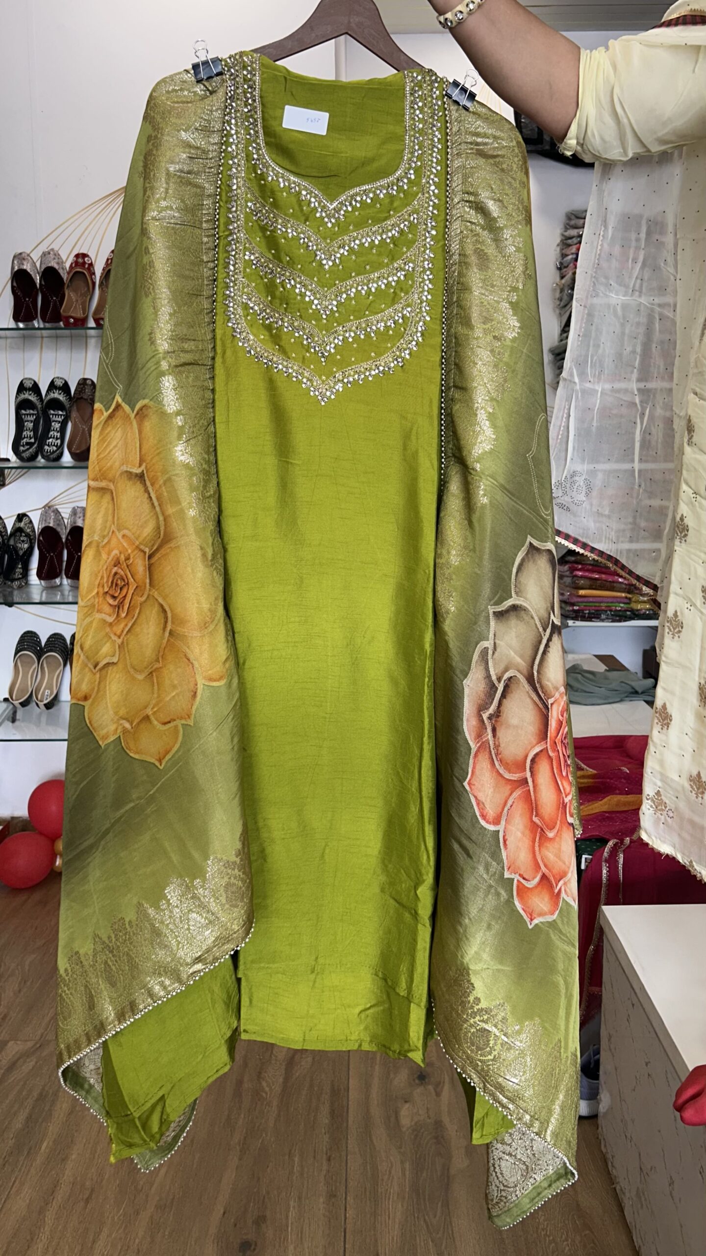 Radiant Lime-Green Raw Silk Suit with Banarasi Silk Dupatta