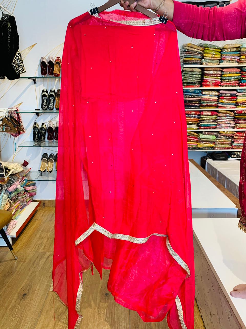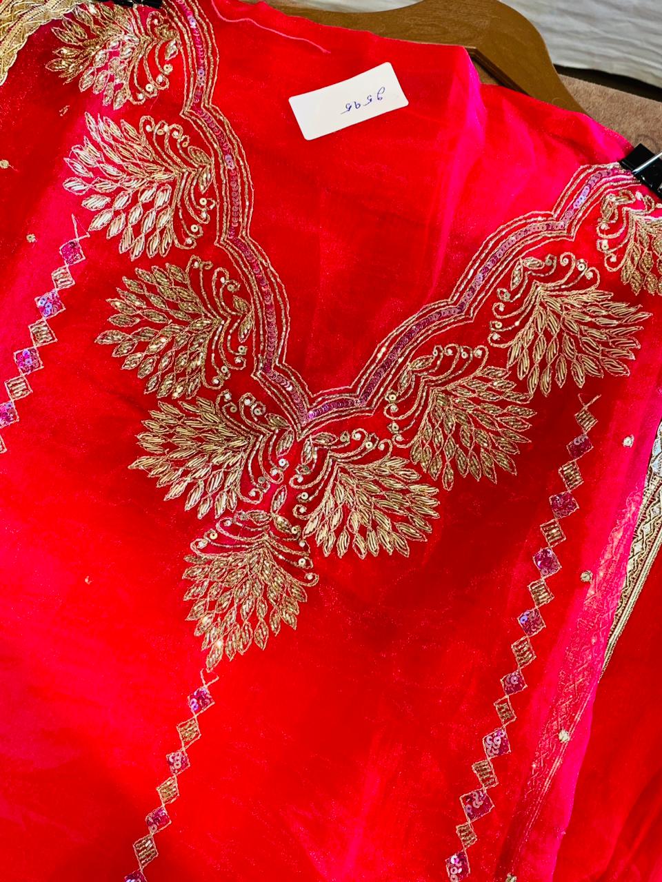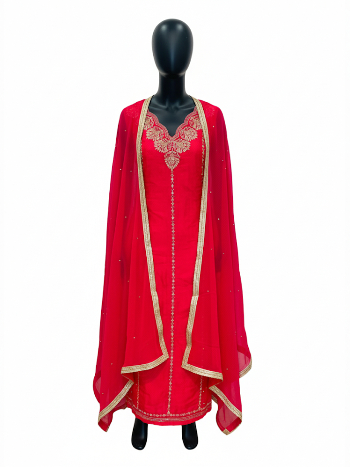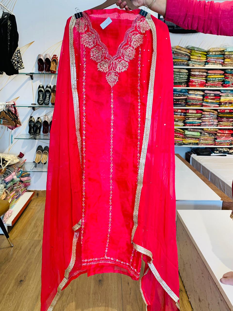 Radiant Pink Tissue Organza Suit with Ornate Embroidery